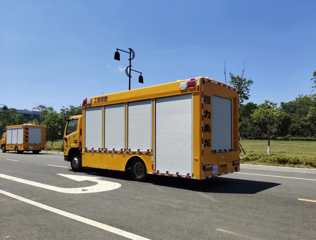 | 上裝配置 | 1、廂體外形尺寸根據(jù)實(shí)際公告標(biāo)準(zhǔn)。 廂體:具備運(yùn)輸、防雨、防火、阻燃、防塵、防銹、降燥,隔震、長(zhǎng)期抗震結(jié)構(gòu)。外部鋼材為優(yōu)質(zhì)冷軋鋼板,表面處理平整,內(nèi)襯優(yōu)質(zhì)冷軋鋼板折彎骨架,強(qiáng)度牢固,配重合理。 2、廂體一體化鋼體結(jié)構(gòu)設(shè)計(jì), 頂部平坦。廂體采用骨架式夾層形式,外蒙皮采用厚1.5mm優(yōu)質(zhì)防銹處理的汽車專用冷軋鋼板,中間骨架采用防銹處理后的鋼管焊接,頂層、側(cè)圍內(nèi)、外層之間填充長(zhǎng)時(shí)間使用對(duì)人體無(wú)害的防火阻燃環(huán)保吸音棉,外層鋪蓋一層阻燃金屬布,內(nèi)飾采用0.8mm厚網(wǎng)孔板。底板采用鋼結(jié)構(gòu)底框架,上表面鋪厚2mm花紋鋼板。 3、車輛廂體采用整體包覆式,廂體兩側(cè)下部設(shè)置裙邊式,全封閉式結(jié)構(gòu),頂部為圓弧型,尾部有轉(zhuǎn)向燈、剎車燈、尾燈、霧燈,箱體表面光滑平整。車廂靠駕駛室前部為休息室,休息室內(nèi)帶折疊坐椅及折疊桌,往后為機(jī)組室,機(jī)組室左、右側(cè)布置進(jìn)排風(fēng)百窗,設(shè)置機(jī)組檢修門一個(gè),下置登車踏步梯,車廂后端為后為卷簾門。右側(cè)排風(fēng)百葉窗下部為維修觀察艙門。左側(cè)下圍設(shè)置有工具箱及功能艙門等。右側(cè)下圍設(shè)置有汽車油箱艙、液壓控制艙等。 4、車廂尾部配置標(biāo)準(zhǔn)儲(chǔ)物貨架讓出水帶、加長(zhǎng)電纜等附件存放有序、互不干涉,讓緊急排水搶險(xiǎn)變得更加快捷、有效。 5、廂體噴漆:工程黃,與車頭同一顏色; 6、最終的門數(shù),形式,打開(kāi)方式嚴(yán)格按照合同要求依據(jù)程力公告生產(chǎn); | ||