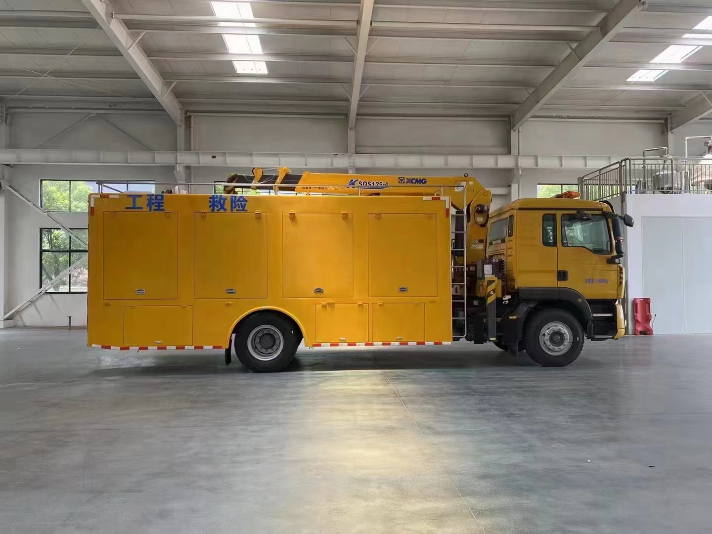 上裝配置  豪沃帶吊救險車配徐工5噸4節直臂吊機,常用功率200KW發電機組,可以選配8臺500方便攜泵,。或1臺1000方自吸泵加6臺500方便攜泵,總排水量4000方/小時。安裝升降照明系統及液壓支撐系統,整車智能系統…