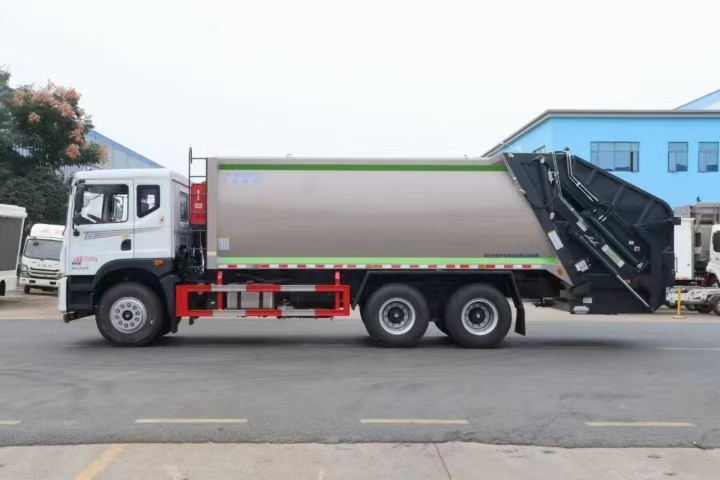 | 上裝配置 | 新款弧形箱體,箱體容積加大約22立方,箱體為優(yōu)質(zhì)高強度Q345錳鋼制作,底箱及填充器采用加厚鋼板,耐腐蝕使用壽命長,三層油漆噴涂處理/電泳工藝。裝載循環(huán)以及垃圾排出時間快,上裝部分具備雙向壓縮和蠕動壓縮功能帶。新款結(jié)構(gòu)加大填充器,手電一體操作模式,帶駕駛室操作,帶駕駛室一鍵卸料功能,尾部裝置可以選裝垃圾翻轉(zhuǎn)斗,掛桶翻轉(zhuǎn)板或者大落地斗。PLC/CAN總線控制方式,光電開關(guān)加延時雙系統(tǒng)控制,降低故障率,方便維修。帶夜間照明裝置,帶污水箱,標配選用:定制油缸(質(zhì)保兩年),中梅多路閥,液壓油泵(雙泵雙閥),帶液壓散熱器,嘉善取力器。 | ||