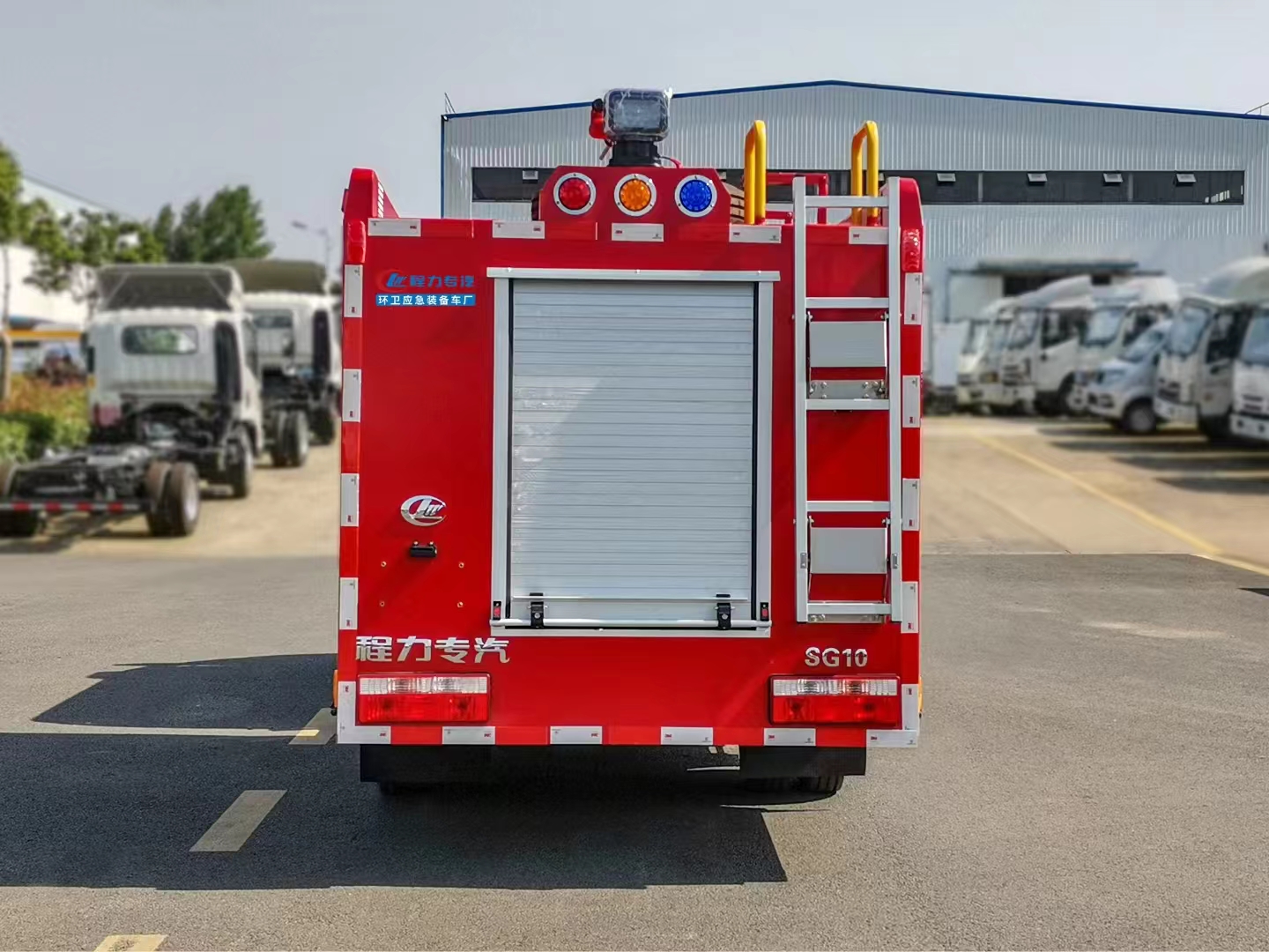 上裝配置 罐體容積0.850立方米,罐體采用優質碳鋼制作箱體,內做防腐處理,全功率夾心取力器,配備CB10/20型消防泵,PS8/20型消防炮,流量:20L/s,射程≥45米,長排警燈,喊話器,爆閃燈,后照明燈,操作面板采用中文標識字樣,預留電臺電源線樁頭,車頂簡易梯架,整車車身小巧,轉場性佳,適用于鄉鎮,集市旅游景區,社區消防站等較窄的道路。